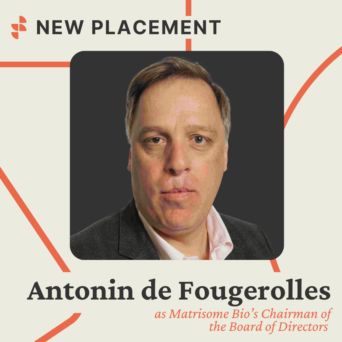 Stevenson Search Partners is pleased to announce the appointment of Antonin de Fougerolles (Tony), PhD to Chairman of the Board of Directors at Matrisome Bio. Matrisome Bio is a therapeutics company developing a new class of therapies that target the extracellular matrix (ECM) of tumors and metastases to deliver payloads while sparing normal tissues.